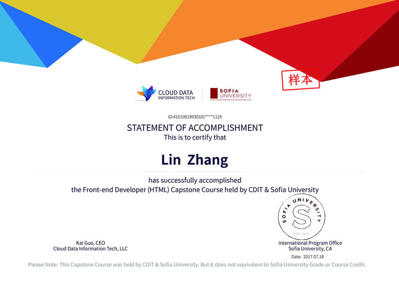 通过云和数据各专业课程学习和各阶段项目评审的同学,不仅可以获得云和数据的认证证书,还可以获得云和数据与美国知名大学联合结业证书,增加求职竞争力。