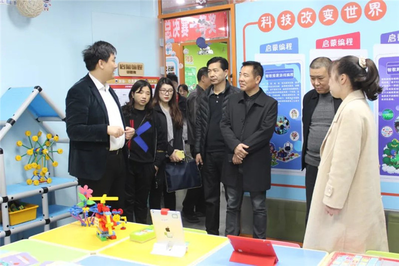 之后众领导来到河南编程科技有限公司参观其教学中心、技术研发中心、产品体验中心,详细了解了河南编程科技有限公司的品牌定位、技术研发实力、教研教学特色与优势、竞赛体系等。