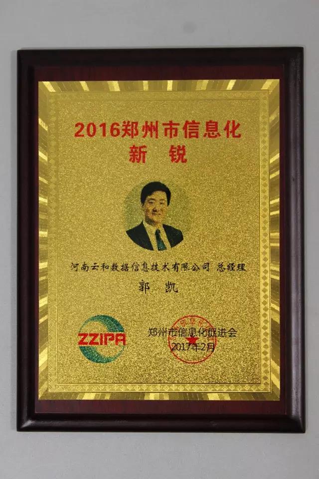 云和数据总经理郭凯荣获“2016年度郑州市信息化新锐”人物称号