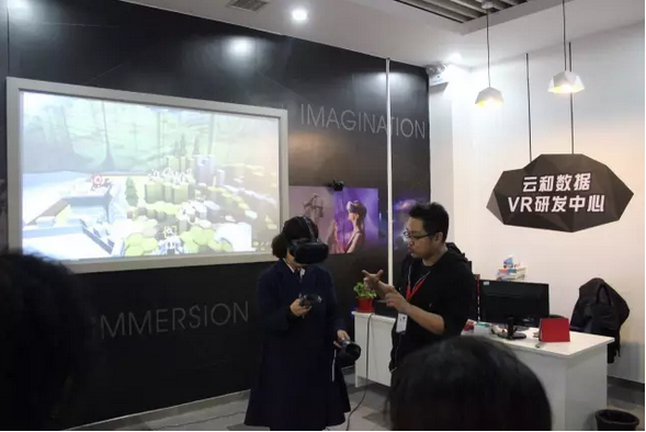 随后郭总陪同领导们先后参观了云和数据的办公区、云和技术研发中心。在云和数据VR研发中心,大家兴致勃勃地体验了云和数据独立研发的AR/VR项目,并对身临其境的代入感与科技感表示惊叹。